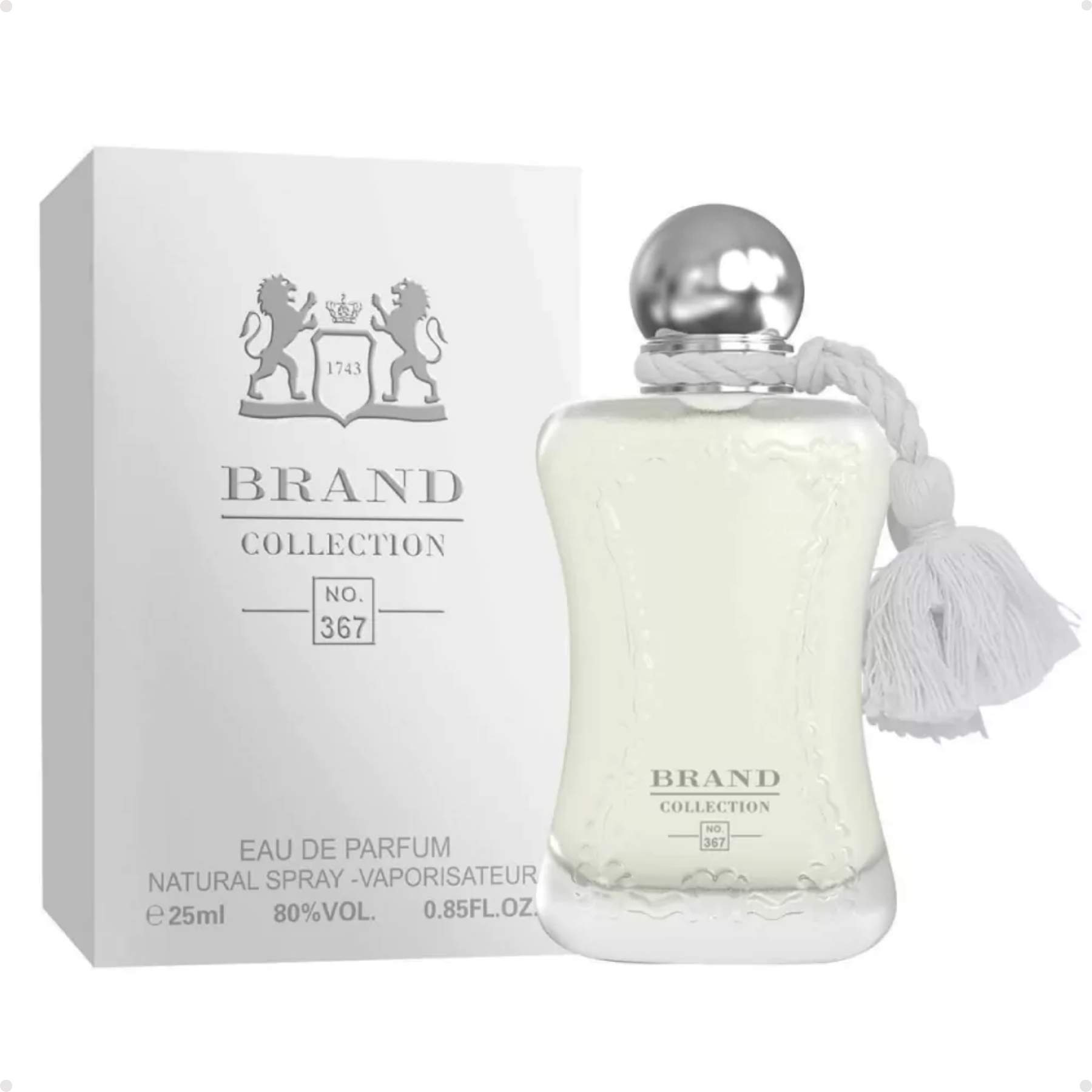 O frasco do perfume Brand Collection 367 - Varaya Feminino 25ml reflete a essência da fragrância: requinte e luminosidade. Com um design elegante e minimalista, apresenta detalhes em branco e prata que evocam sofisticação e pureza. As linhas suaves e o acabamento impecável destacam a exclusividade e o luxo característicos da marca.