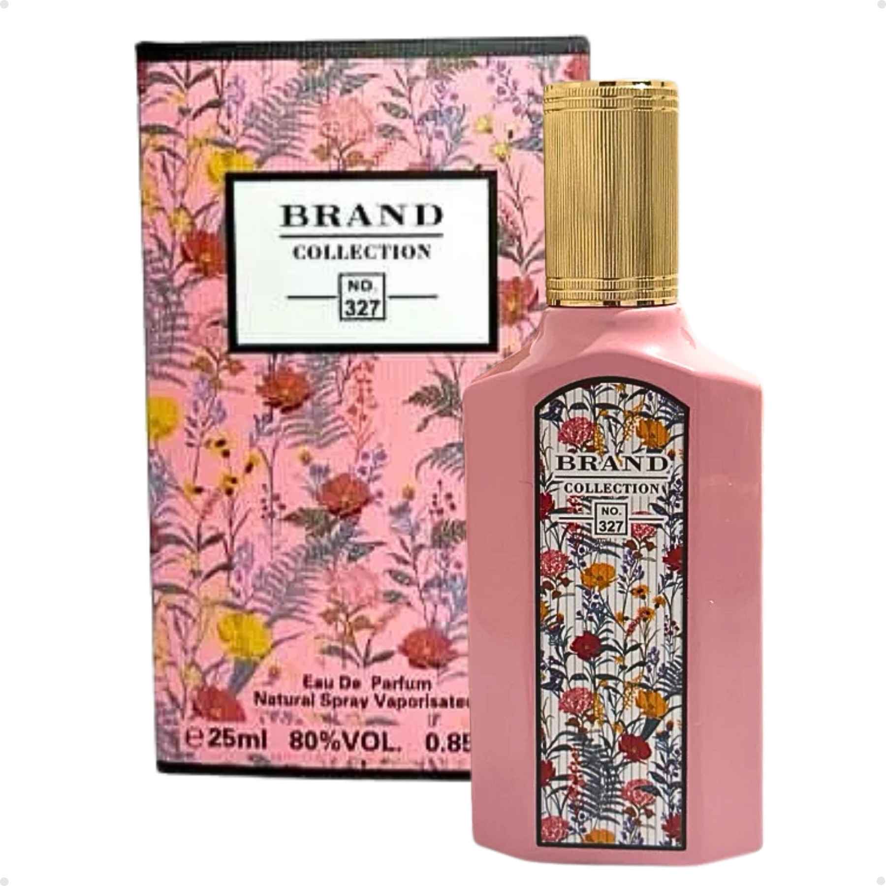 O frasco do perfume Brand Collection 327 - Gucci Flora - 25ml é uma obra de arte por si só, com sua silhueta elegante e tampa em formato de flor, homenageando a flora em toda a sua beleza. A cor suave do líquido evoca pureza e feminilidade, tornando-o uma adição encantadora à sua coleção de perfumes.