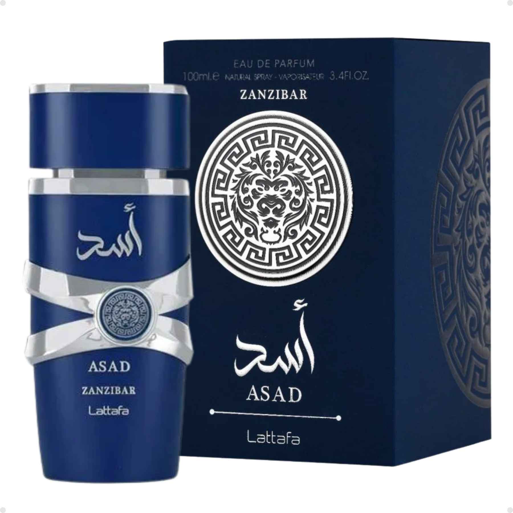 O frasco do Perfume Arabe Lattafa Asad Zanzibar EDP 100ml Masculino mantém o design imponente e robusto da linha, mas com uma estética que remete ao luxo tropical. Com acabamento em tons de azul profundo e detalhes em dourado, o frasco simboliza a união entre o mar e a opulência. A tampa e os ornamentos metálicos são detalhados e transmitem uma sensação de poder e exclusividade, tornando-o uma peça de destaque em qualquer coleção.